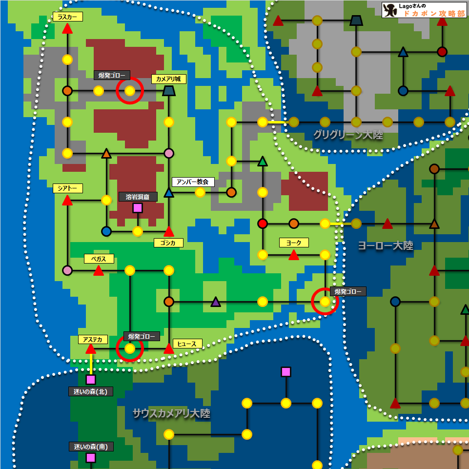 地形マスで出現する通常モンスター、村を支配するミドルモンスターを記載しています。