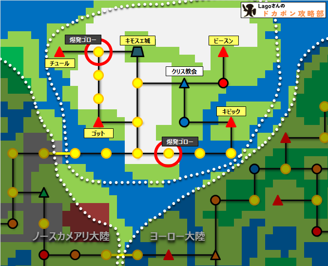 死亡した場合は、最後に止まったドカポン城か教会で復活するようになります。