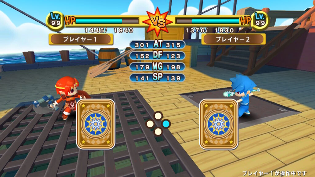 バトルカード選択時、画面中央に寄っている方のカードを選ぶと必ず先攻を選ぶことができます。