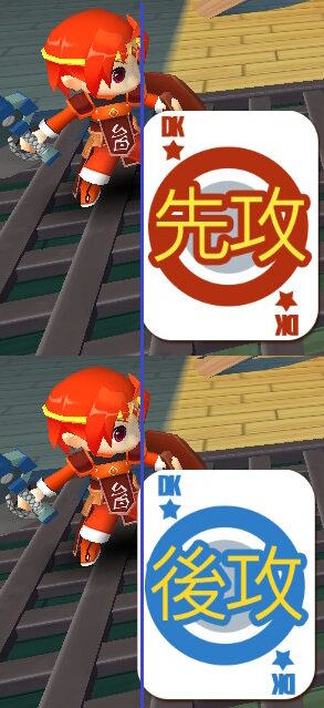バトルカード選択時、カードが中心に寄っている方のカードを選ぶと必ず先攻を選ぶことができます。